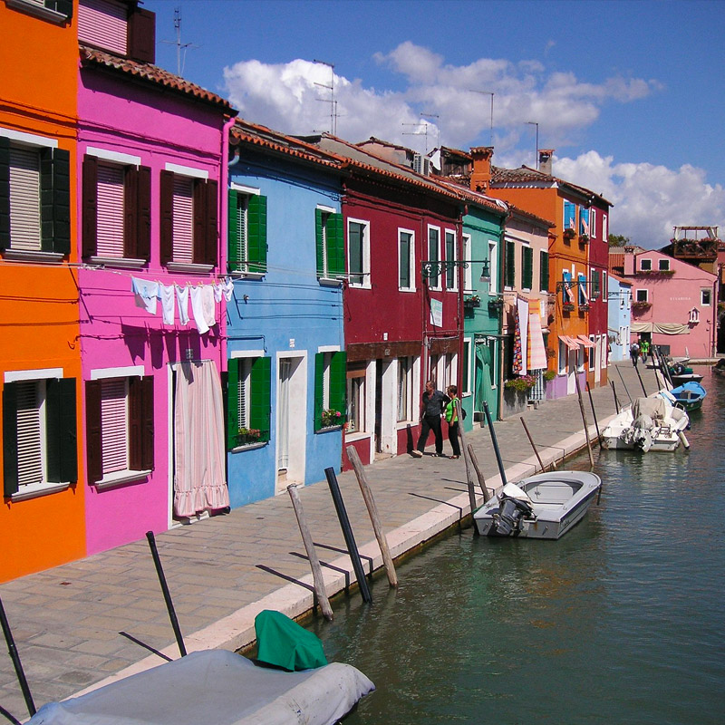 Burano, l’isola del merletto, dove passeggiare tra le caratteristiche case colorate.