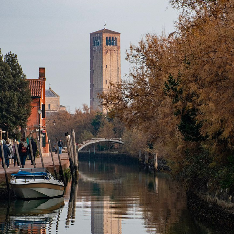 Murano, l’isola più grande della laguna di Venezia, dove visitare una fornace e assistere alla lavorazione del vetro, visita al Museo del vetro e alla Basilica di Santa Maria e Donato.